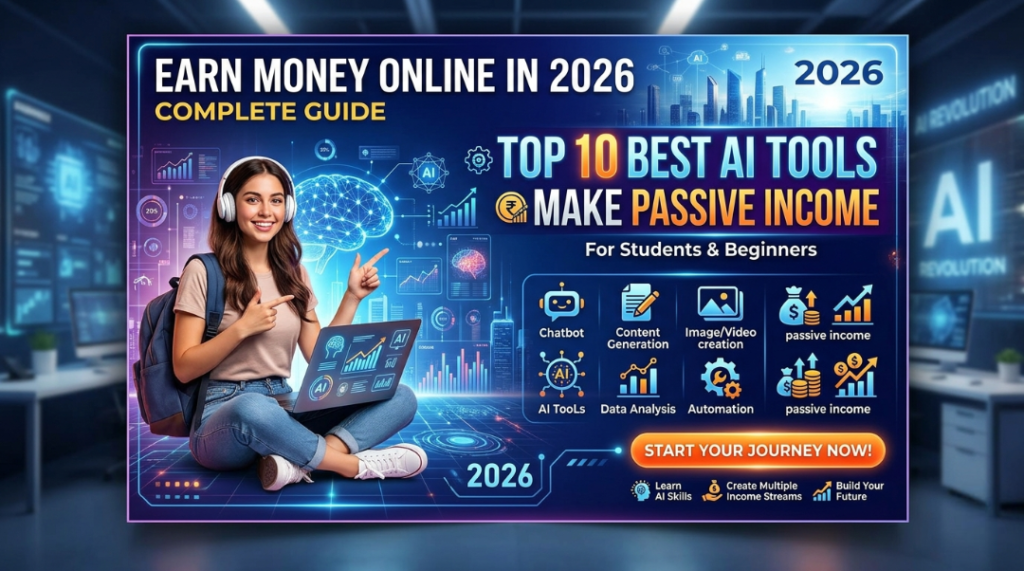 Earn Money Online in 2026, top 10 Best AI Tools to earn Money and make Passive Income – Complete Guide for Students & Beginners.
