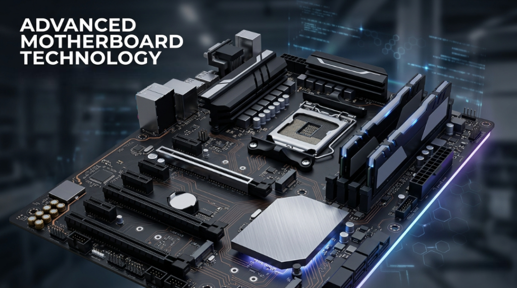 The Motherboard is the main circuit board of any computer. The entire computer system operates around the motherboard. Components such as the CPU (Central Processing Unit), ROM (Read Only Memory), and RAM (Random Access Memory) are installed on the motherboard.