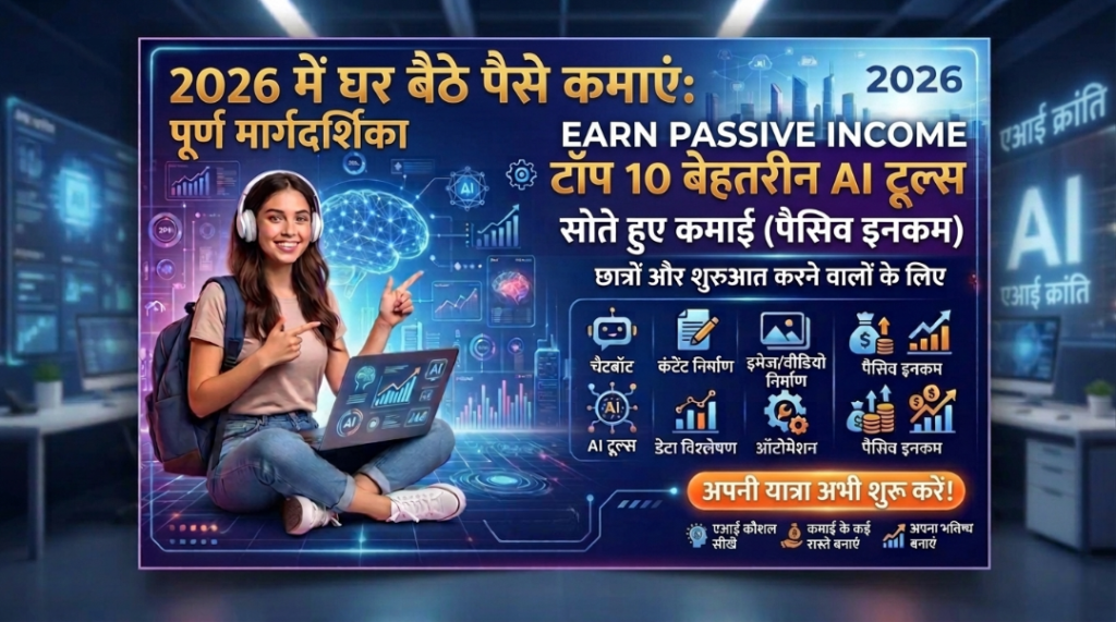 2026 के टॉप 10 AI टूल्स से ऑनलाइन पैसे कमाएं – छात्रों और शुरुआती के लिए आसान गाइड और पैसिव इनकम टिप्स