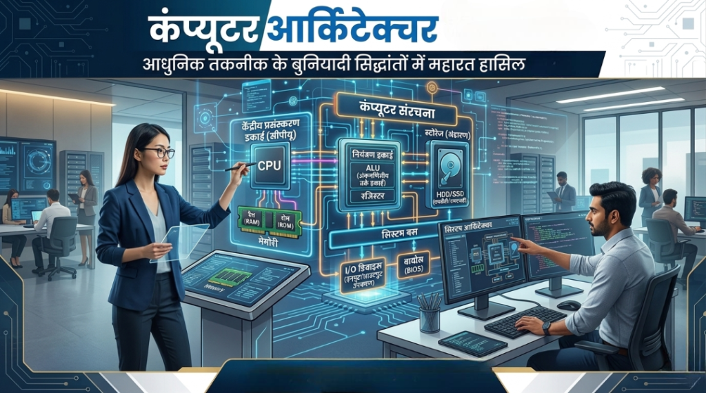 कंप्यूटर आर्किटेक्चर एक तरह का डिजाइन (ढांचा) होता है, जो यह तय करता है कि कंप्यूटर के हिस्से (मेमोरी, I/O डिवाइस, CPU) कैसे व्यवस्थित हैं और ये आपस में मिलकर डेटा को प्रोसेस करके काम कैसे करते हैं।
